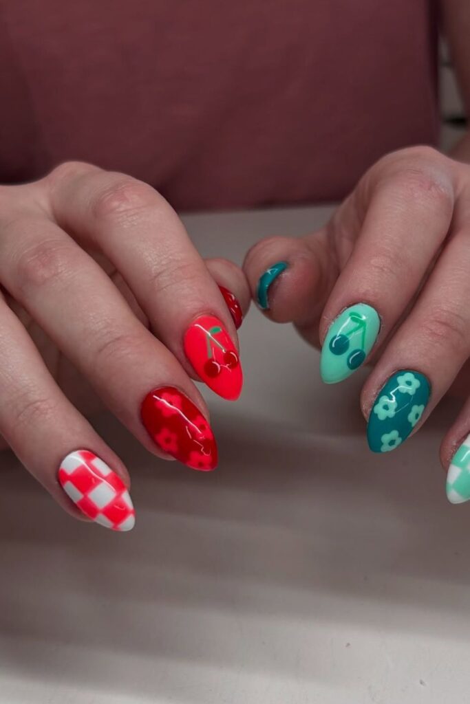 You mix cherries with color blocks when you want a fun set that shows early-summer energy.