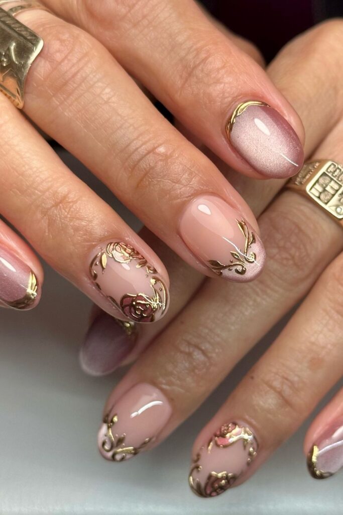 When soft balance matters, a nude base keeps the design fresh.
