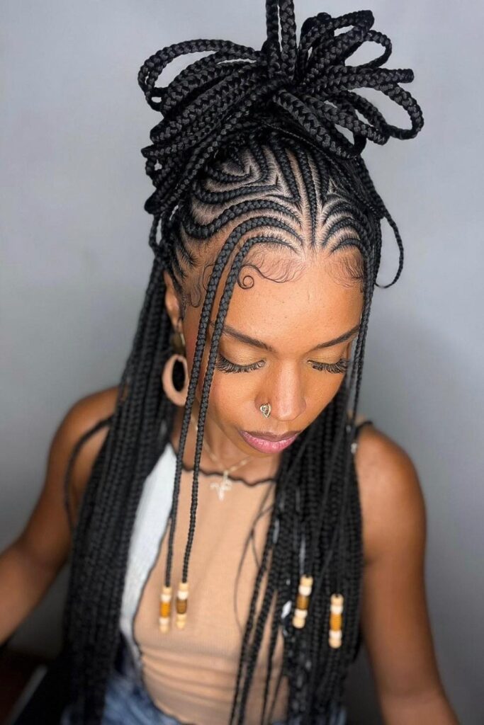 You balance the big braids under it so the design stays the main point.