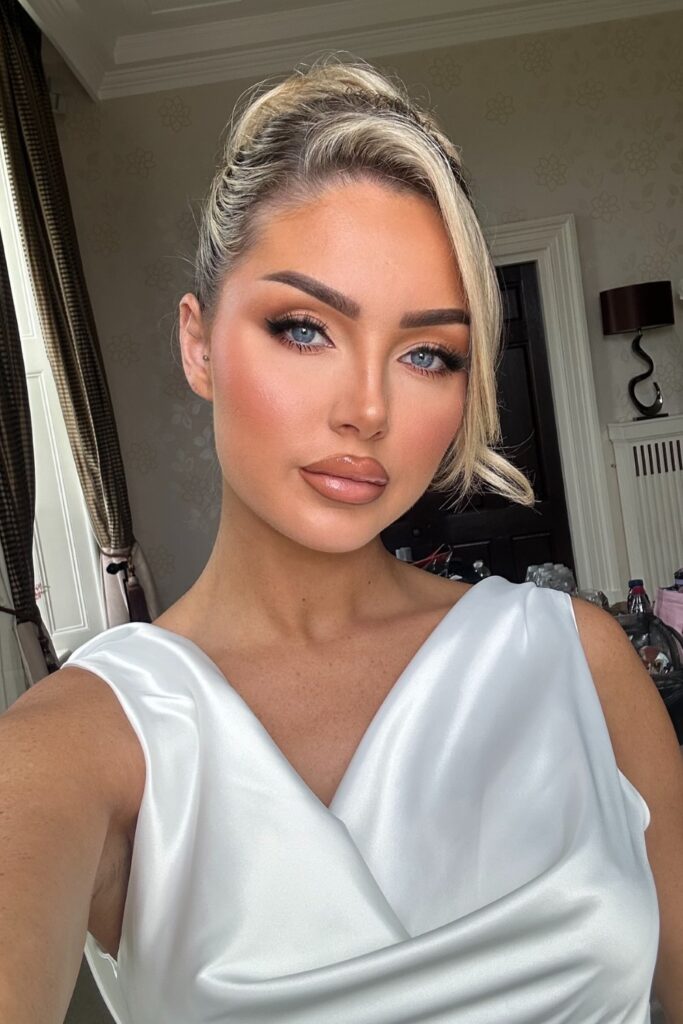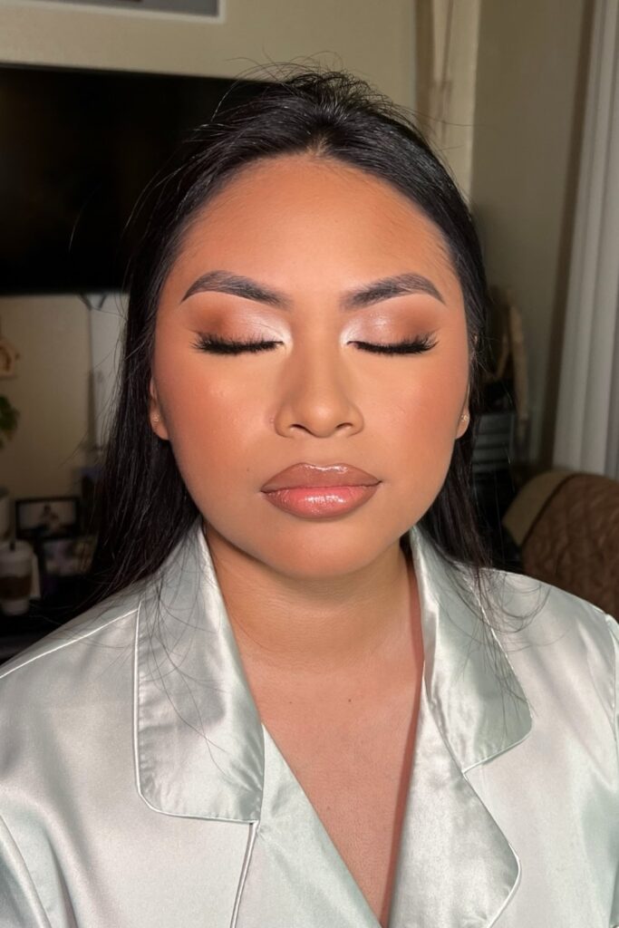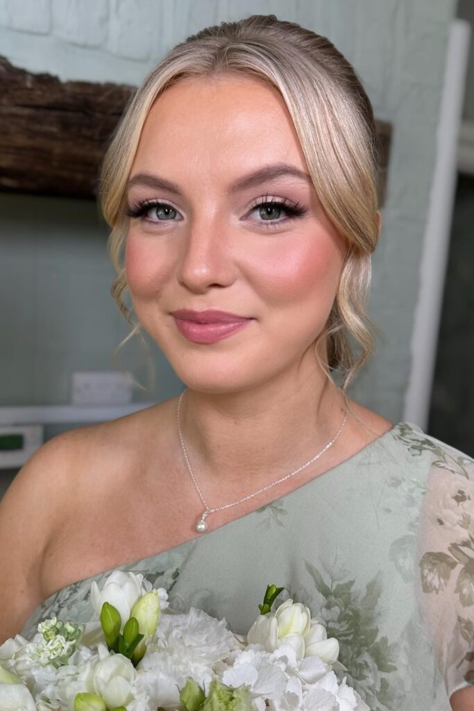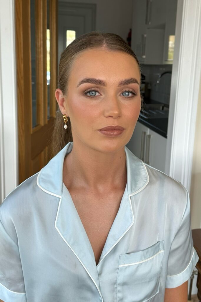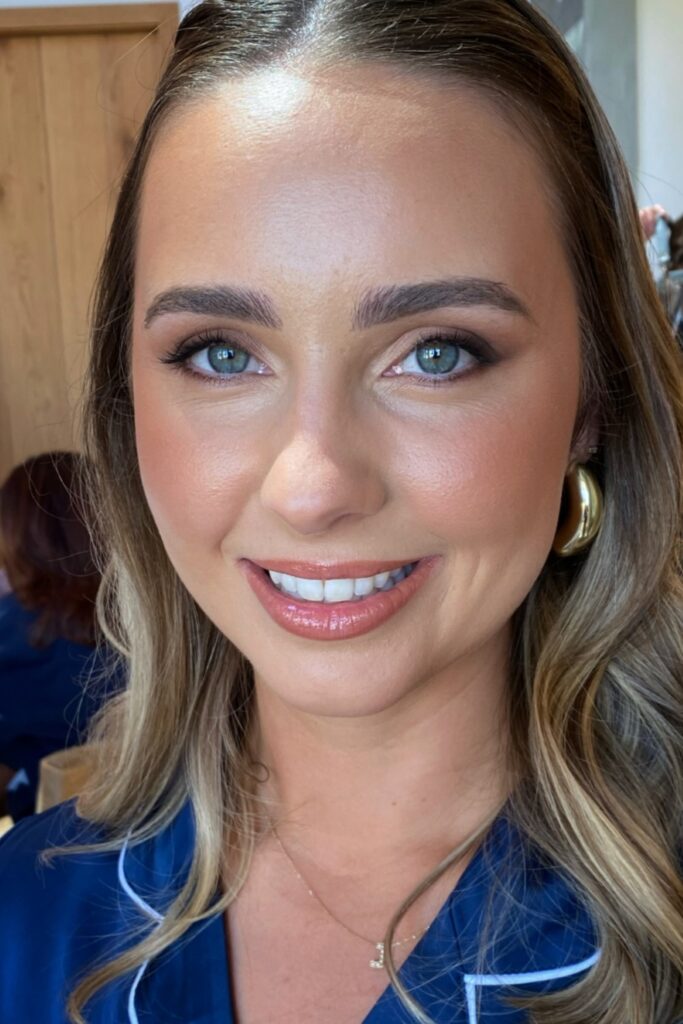 The best bridesmaid makeup stays neutral, moreover warm tones suit most dresses and light keeps the face fresh.