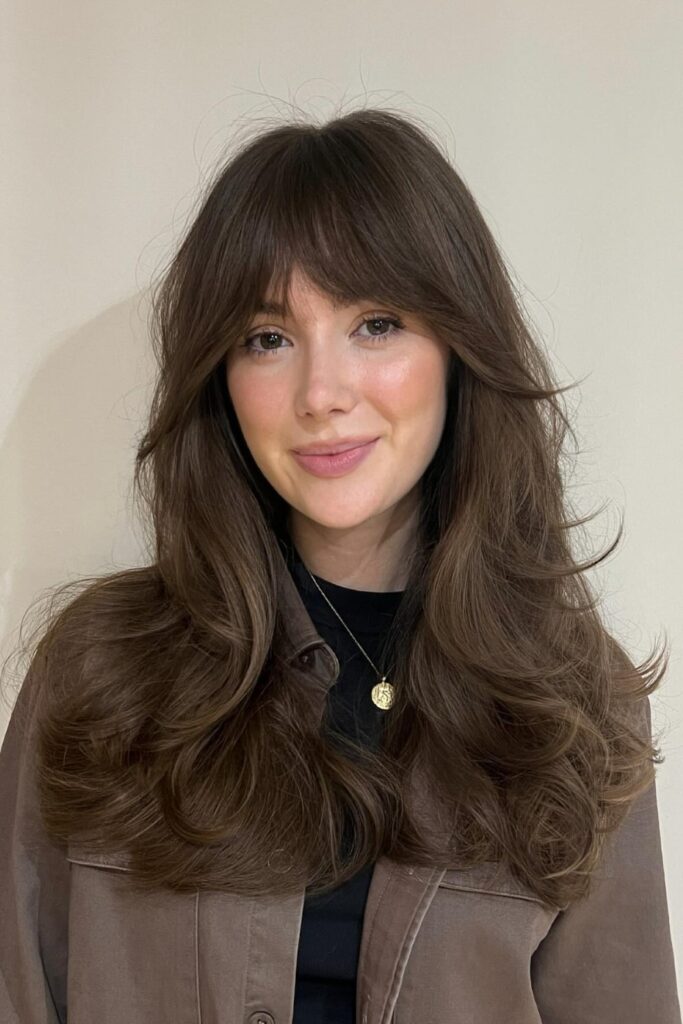 You keep the hair smooth at the crown as the length flows into calm waves for a neutral winter look.