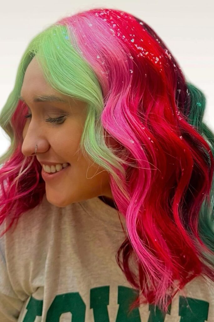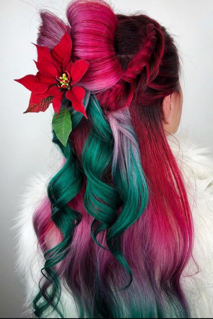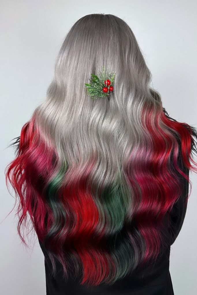 You choose a bold color mix that turns your hair into a clear holiday statement.