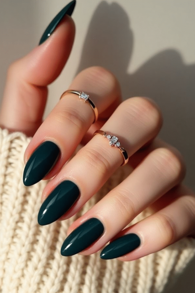 Your nails should fit that rhythm. If you want something festive without screaming Christmas, go for deep green or ruby red with a glossy finish.