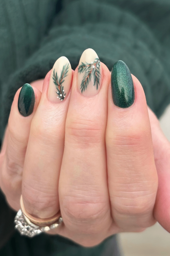 You might want something calm after all that sparkle, and these pine branch nails bring that winter peace.