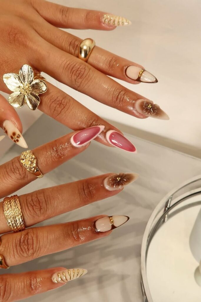 When you pair warm nudes or soft browns with minimal accents like a gold line, a tortoiseshell tip, or a chic micro-French, your nails stay classy and versatile.