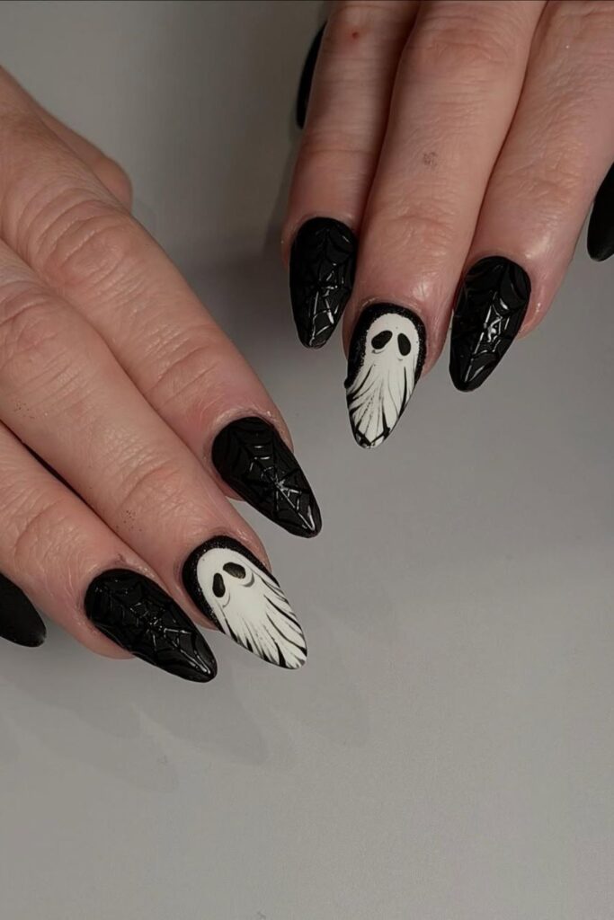 Matte Black Ghost Nails