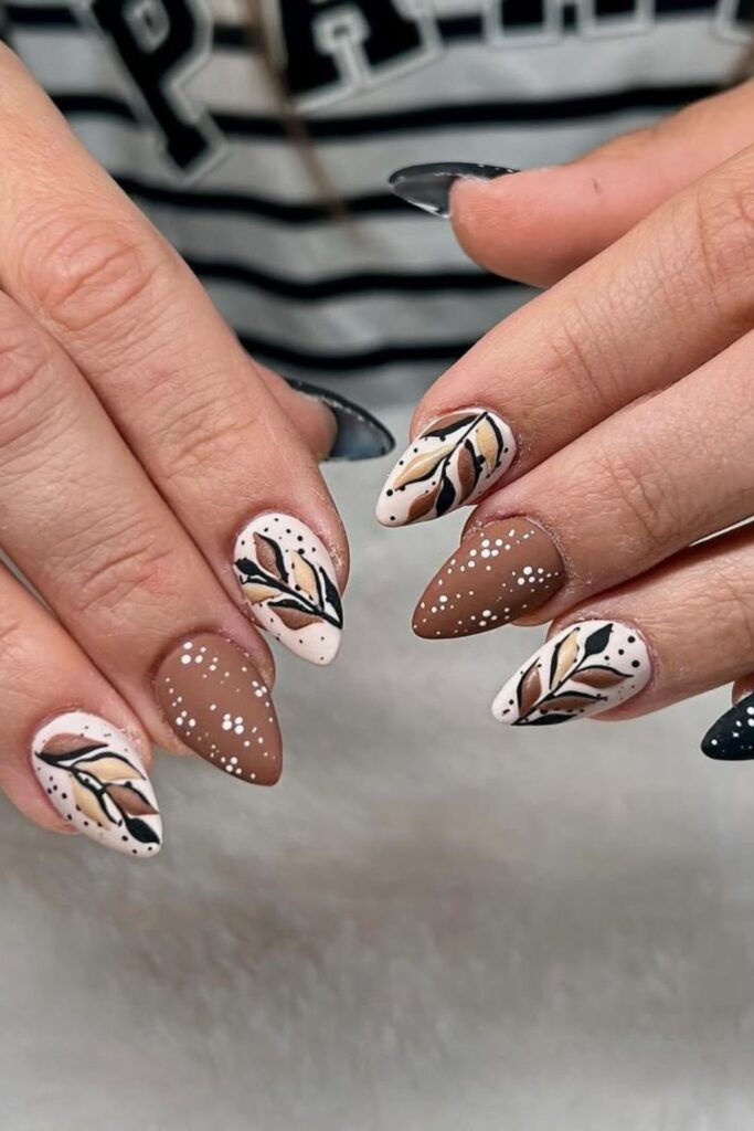 Matte Leafy Fall Nails