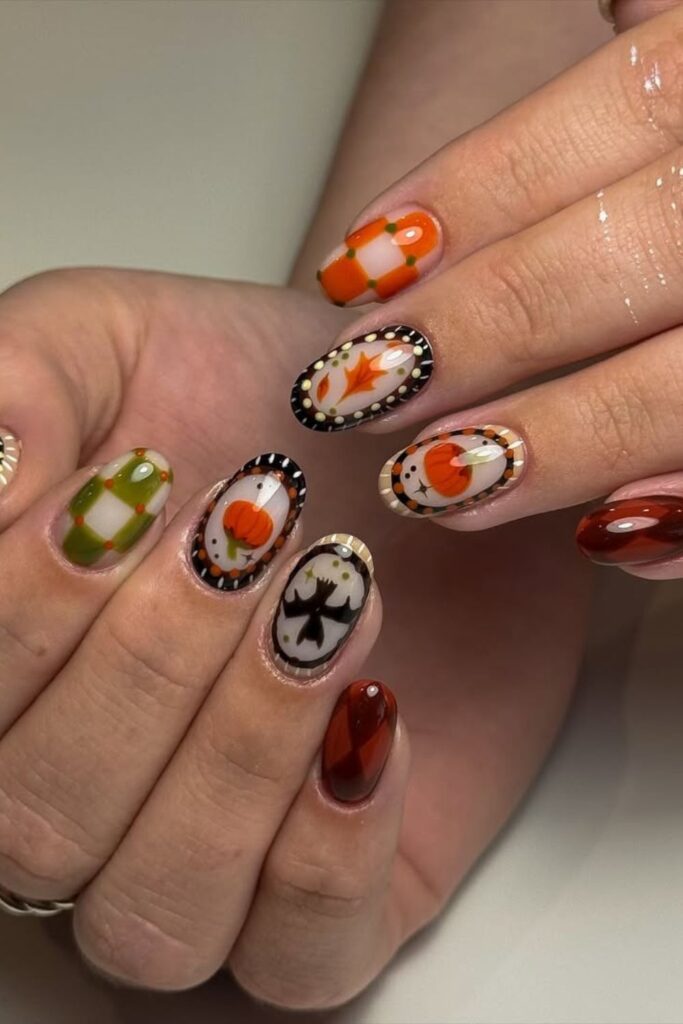 Pumpkin Checkered Nails