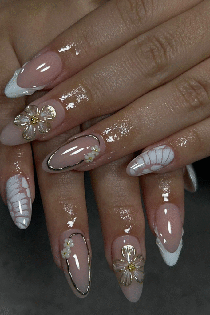 If you build the flowers with tiny acrylic or gel layers, it gives the design dimension without making it bulky.