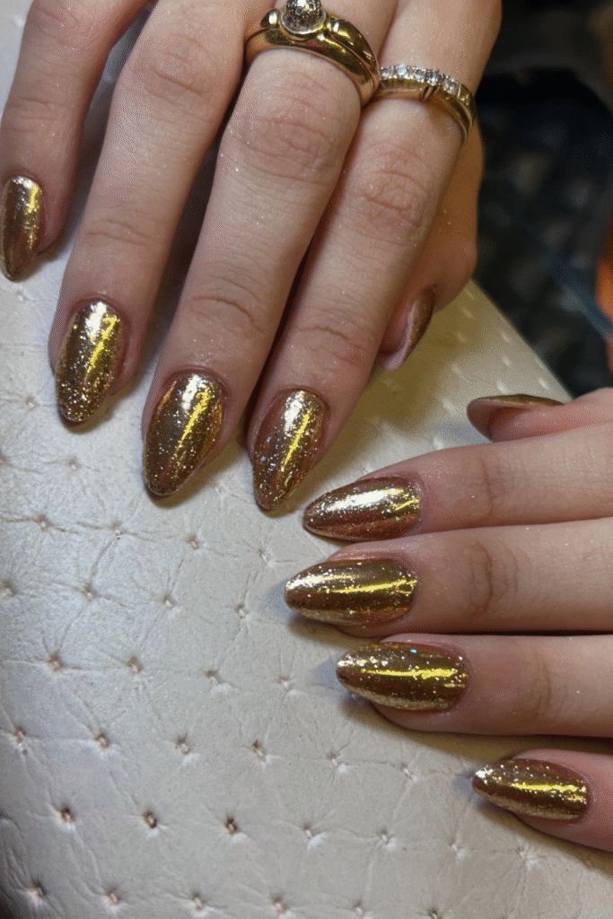 When you want your nails to do the talking, a full gold chrome set never disappoints.