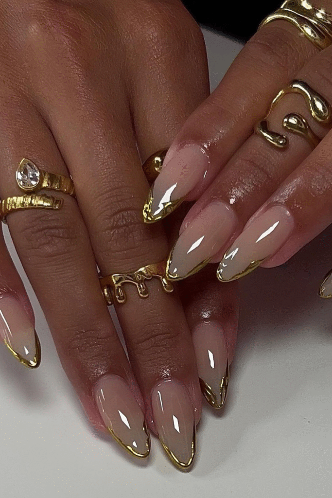 The shimmer base keeps things soft, while the thin gold tips make it look like quiet luxury.