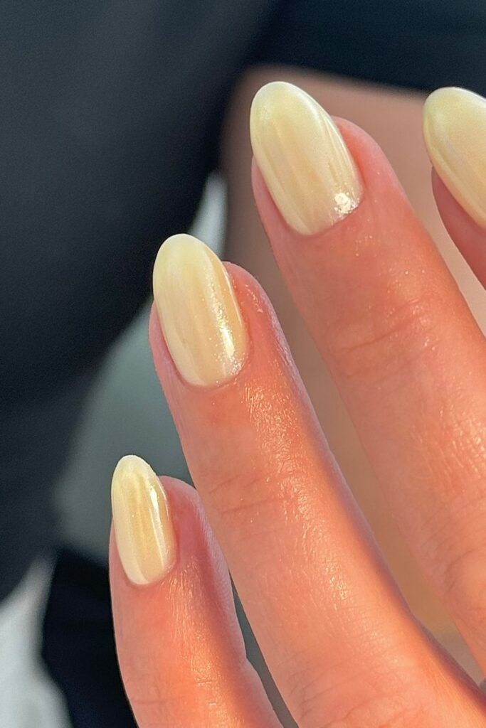 The soft yellow adds a fresh lift to your nails without stress.