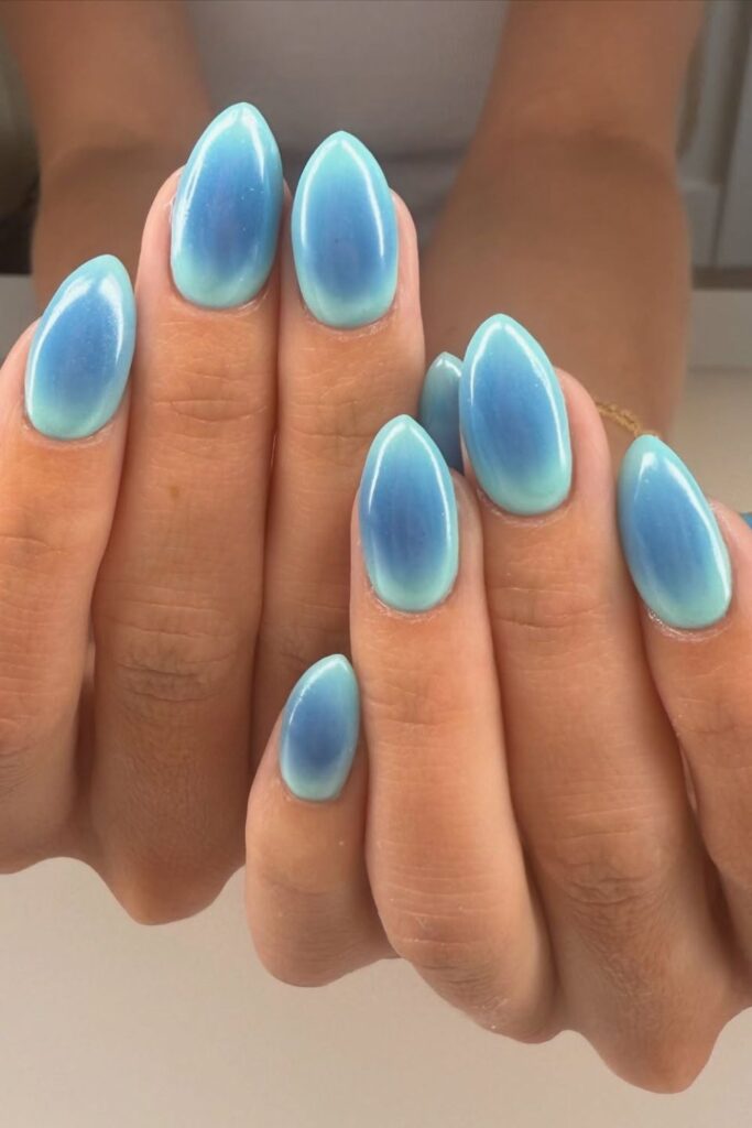 You prefer this blue aura set when you want a cool shade that fits May’s sky tone.
