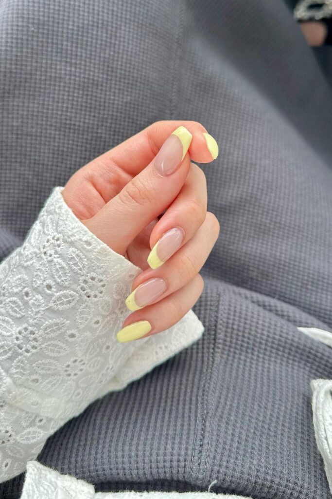 You pick this yellow French set when you want a bright tip without a full bold color.