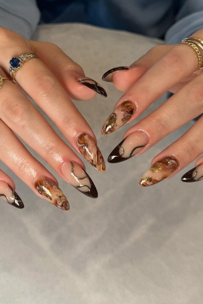 Whenever you show this, ask for two marble nails, two mocha tips, and one nude nail with gold.