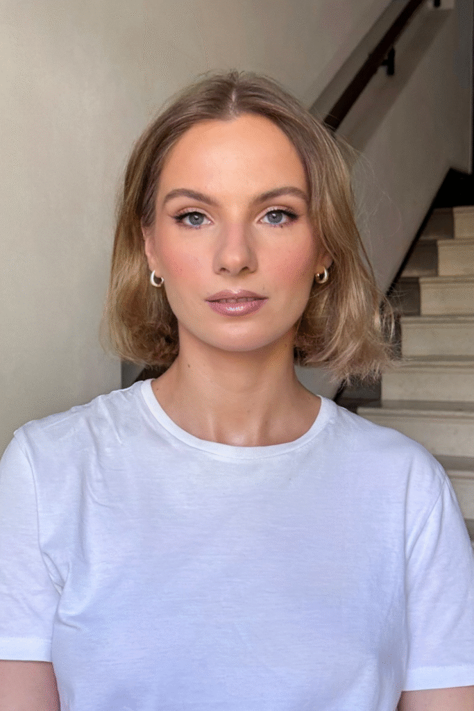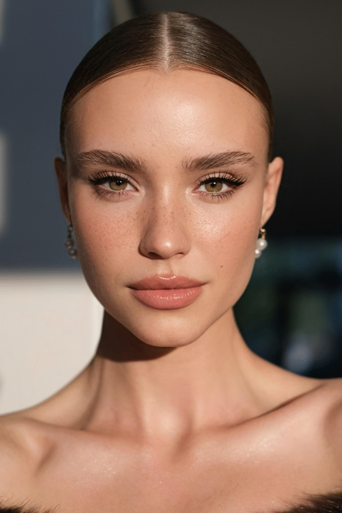 You keep tones neutral, using tinted balm and brushed brows to frame everything softly.