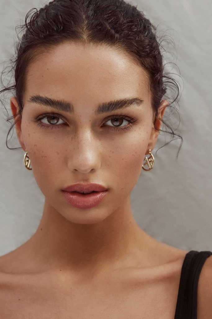 You bring freckles forward instead of covering them, letting the skin look real and breathable.