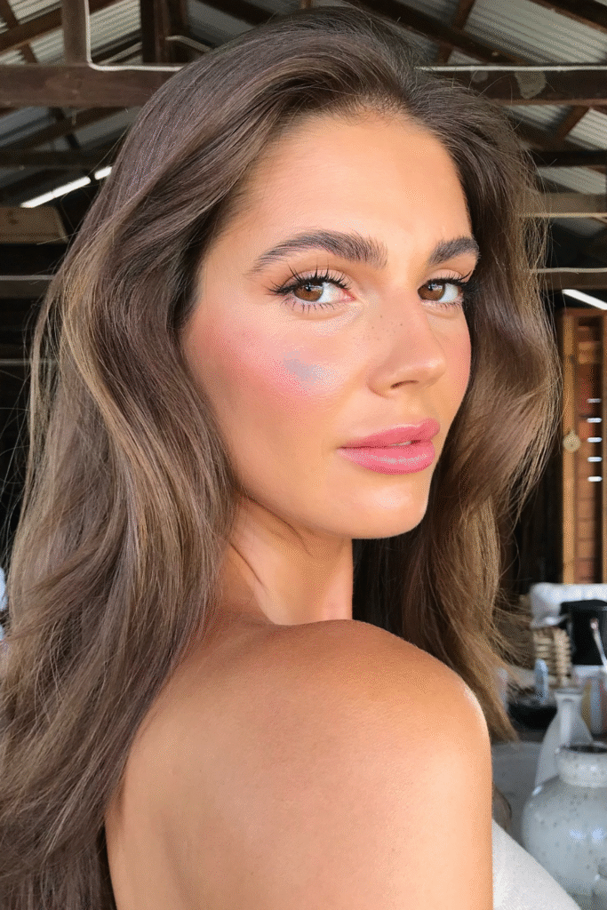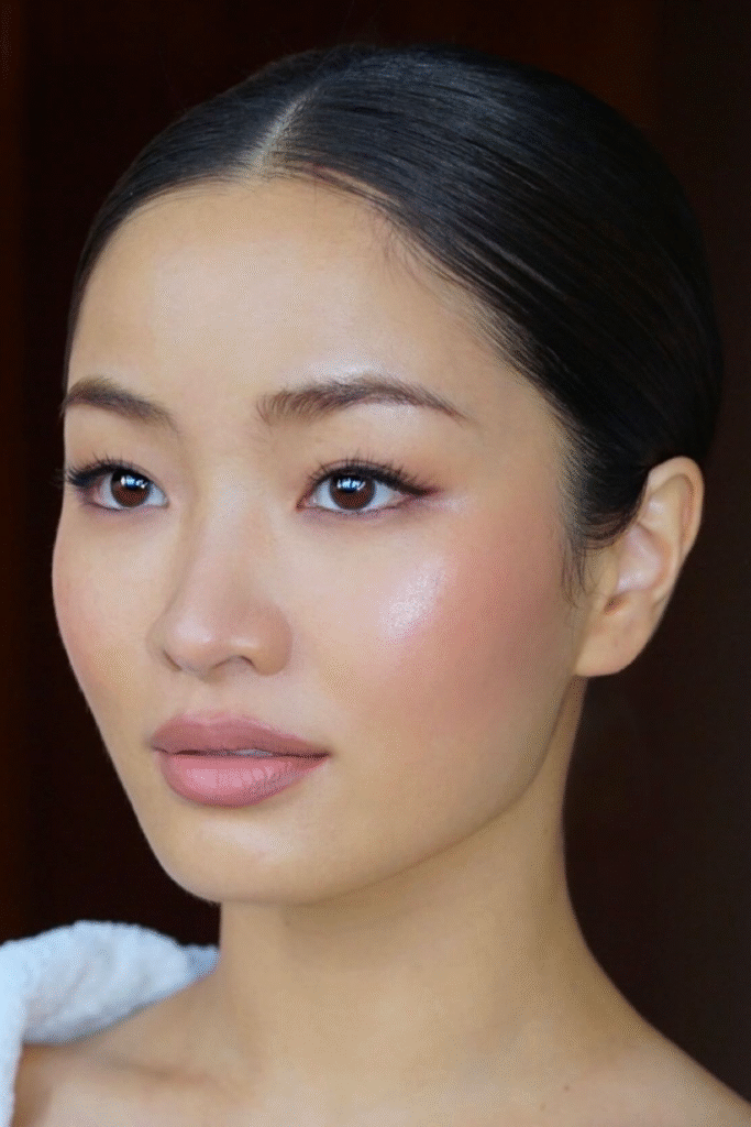 You can see how a creamy blush in peach tone adds life without stealing attention from your features.