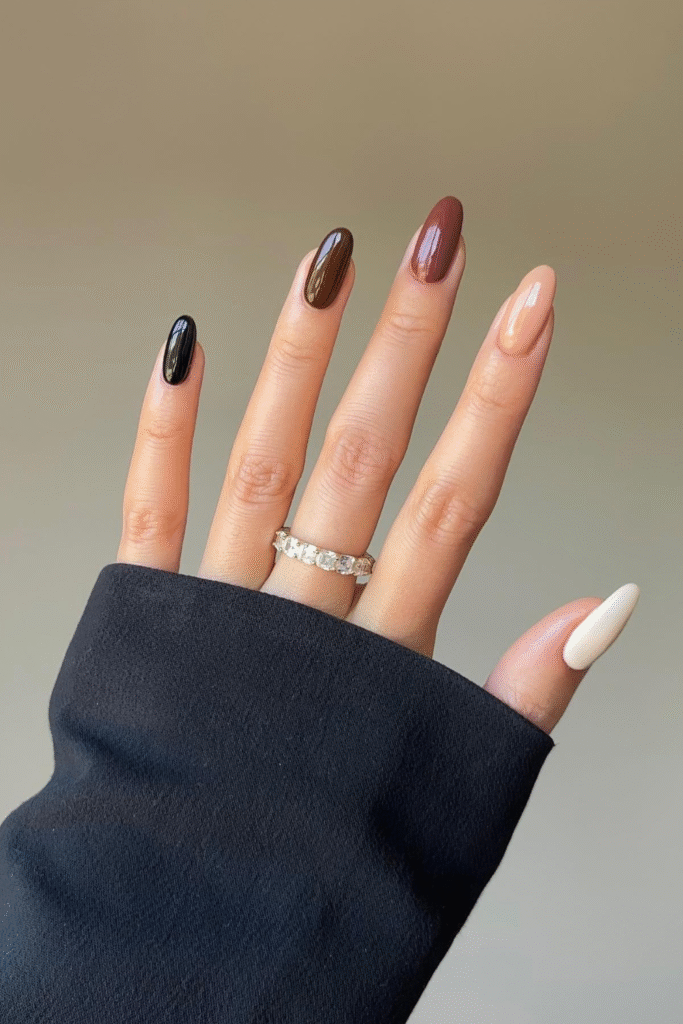 Think milky beige, soft pink, or creamy mocha. These tones give a clean, rich look without trying too hard.