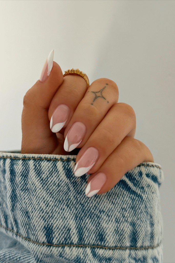 You choose curved French tips instead of the usual straight line, letting them flow naturally with your nail shape.