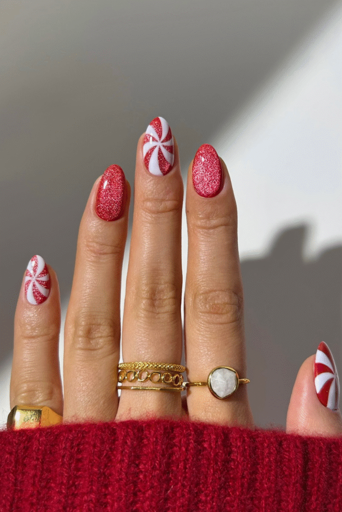 If you love playful nails with a festive twist, this candy swirl design is for you.