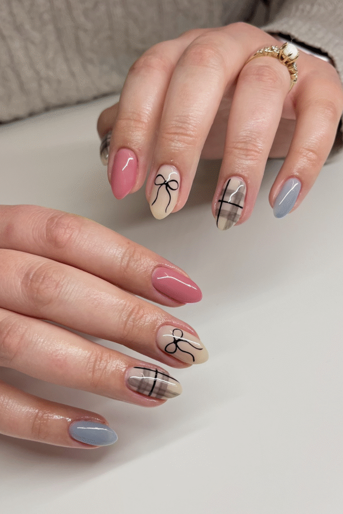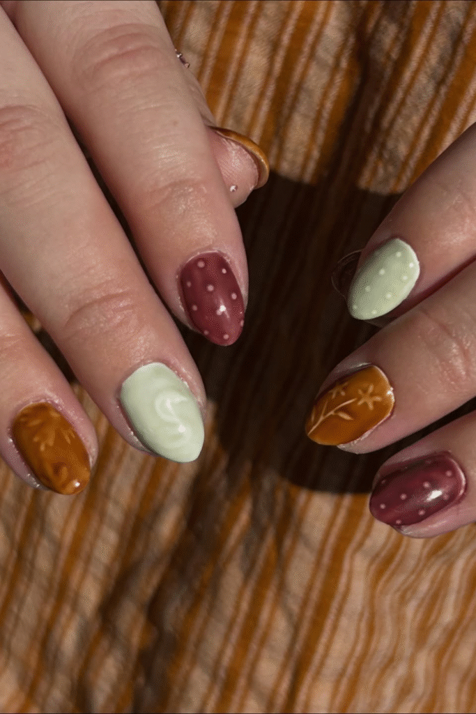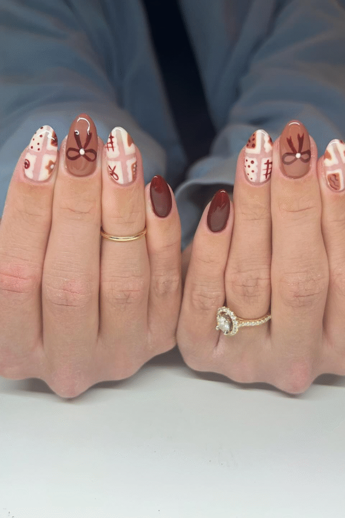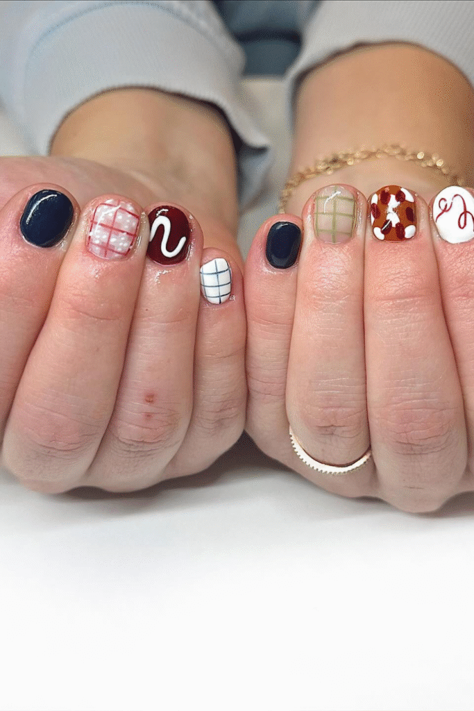 These nails give you that cozy, layered outfit vibe but in nail form.