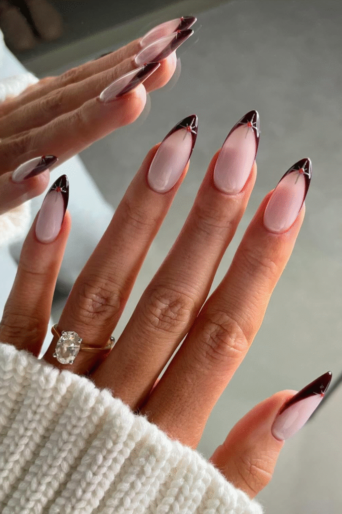The crisp deep tips and small star accent make your hands look elegant without doing too much.