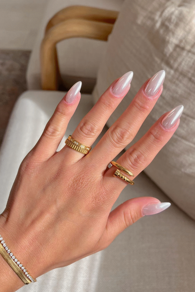 This soft pearl chrome look is made for anyone who loves simple, classy nails that still shine.