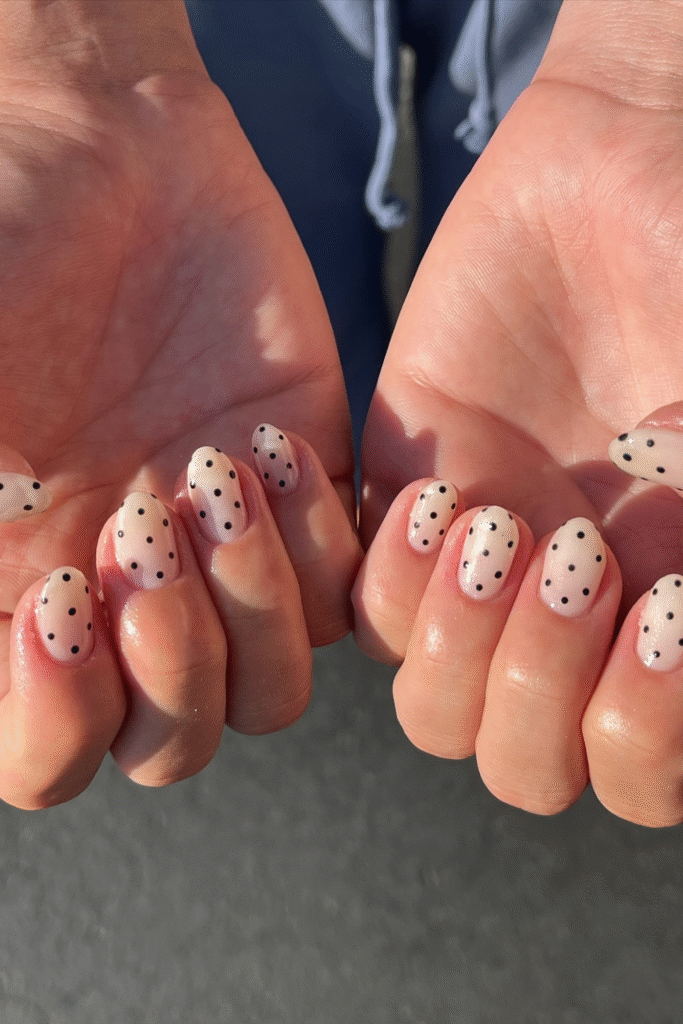 The soft nude base gives your nails a clean, polished look, while the dots add just the right amount of playfulness.