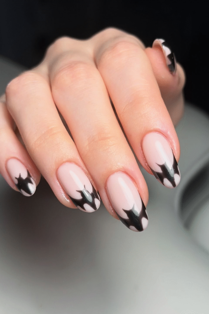 A modern twist on the classic French, the black abstract tips bring a little edge while keeping things classy.