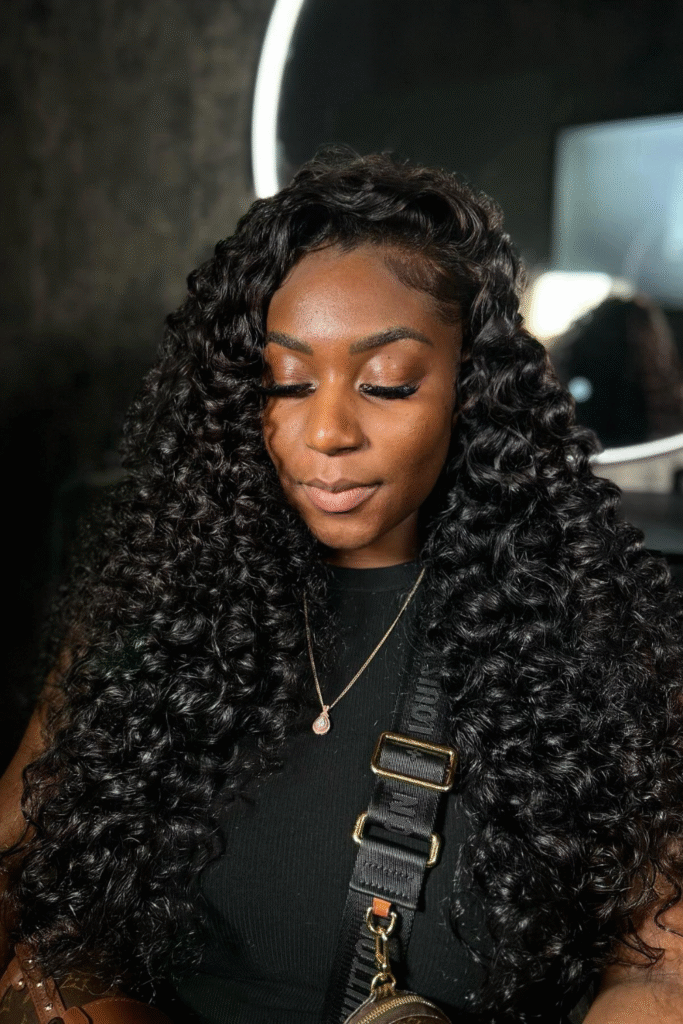You moisturize lightly before styling to keep every coil glossy yet soft to touch.
