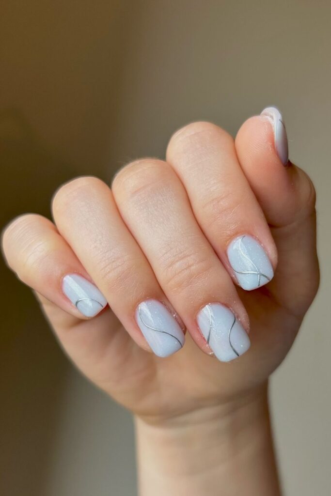 Soft Silver Wave Minimal Nails