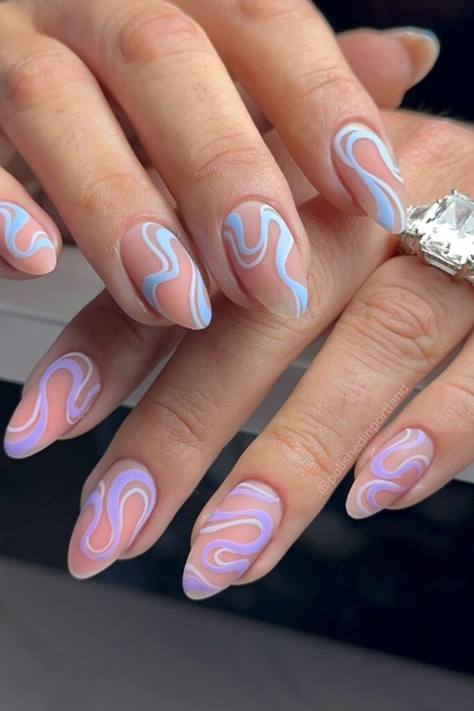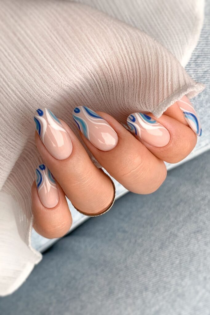Once you outline each swirl with a darker shade, the watery look becomes perfect for summer days, beach trips, or denim heavy outfits.