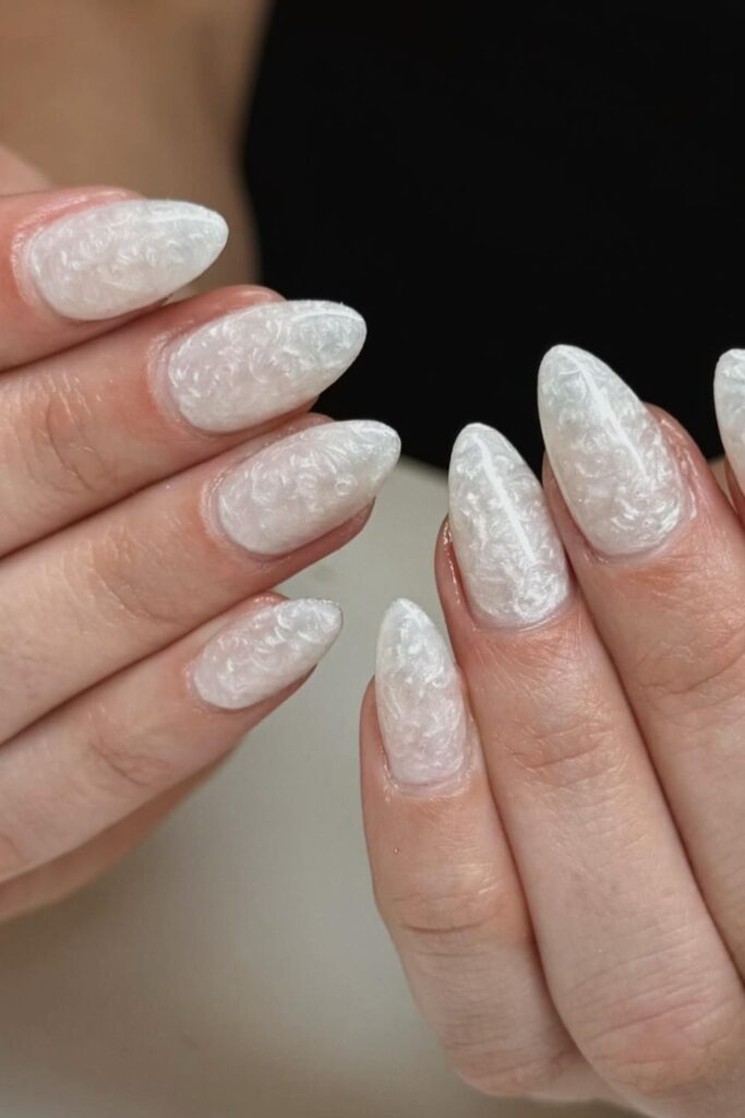 Your choice works best for winter outfits if you ask for a thin layered white gel to create the cloudy effect.